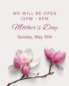 We are open Tuesday through Thursday 3pm to 9pm, Friday and Saturday 3pm to 10pm and Sunday 3pm to 8pm. We are closed on Mondays, however, we are